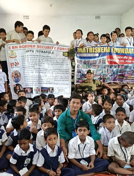 Some moments of an awareness camp (09/04/2024) at Nagendranath Vidyapith organized by our মাতৃস্নেহ ফাউন্ডেশন-Matrisneha Foundation and ANTI HUMAN TRAFFICKING UNIT 05BN BSF.